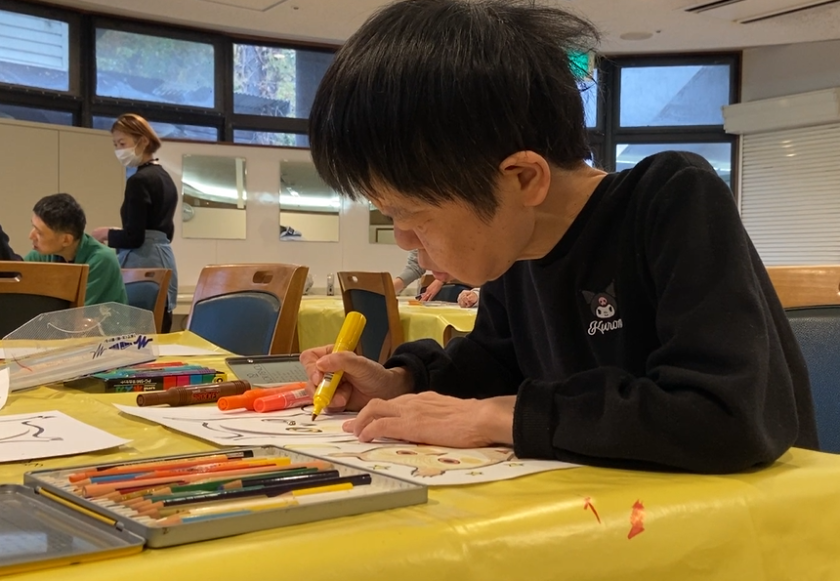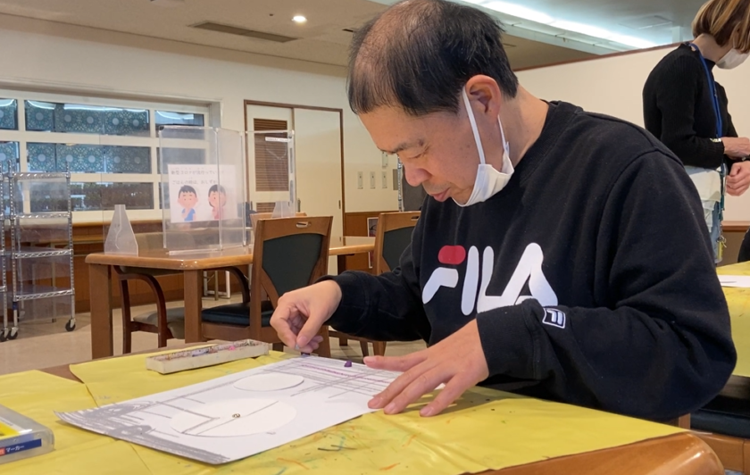 日中活動のグループでは、エアロビや生け花、造形プログラムを行っています。