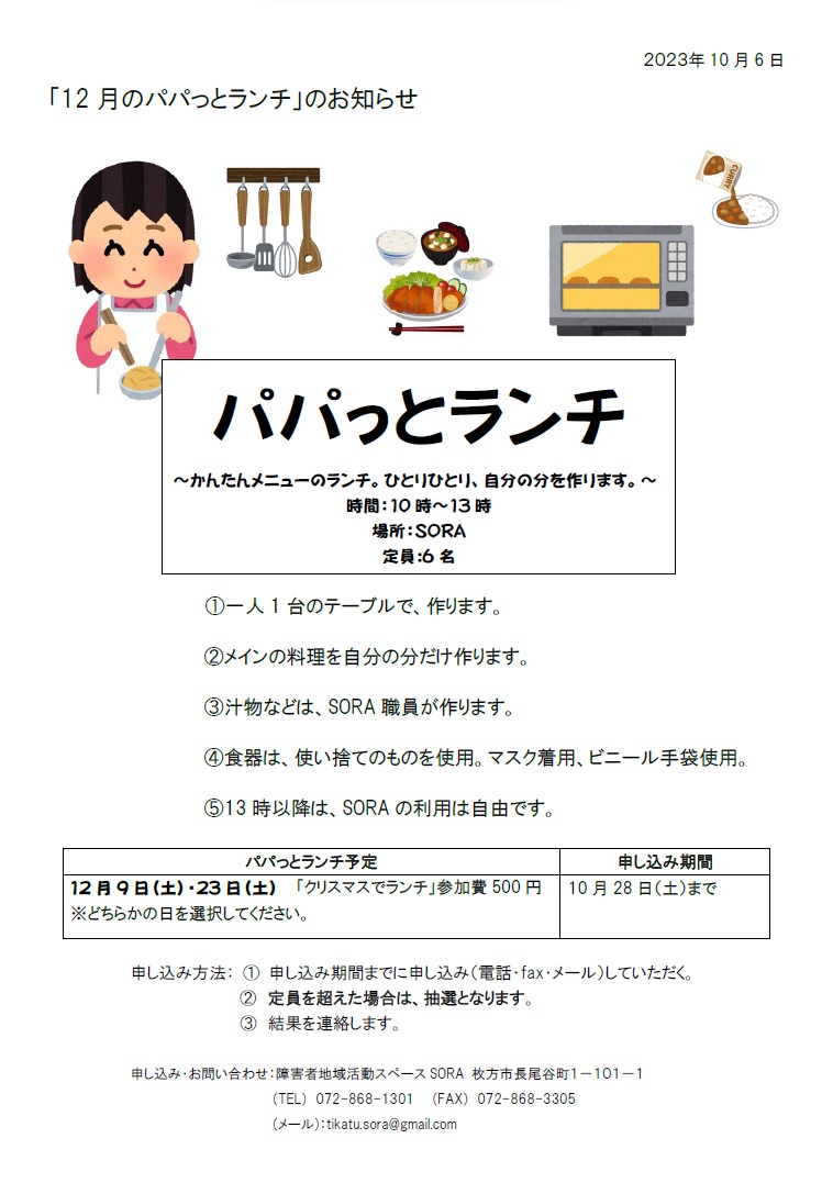 【予約制】パパっとランチの申込開始!~かんたんクリスマスランチをつくろう!~
