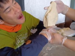 まずは生地をこねます、皆さん一生懸命たくさんこねます。
