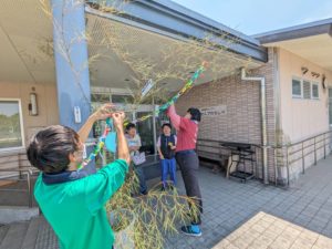 竹の準備をして、利用者さんと願い事を書いて、飾り付けをして・・・