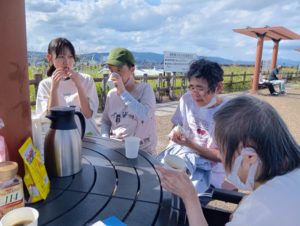 雄大な景色ですね。デザートとコーヒーを持って、外で食べるとひときわ美味しいですね。