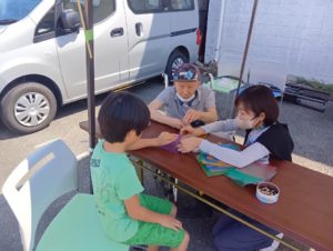 毎年のことながら、たくさんのお子さんが来てくださり、利用者様と一緒に風車作りにチャレンジしてくれました。