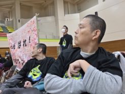 ご招待いただいたグルクンマスク選手を応援に行かなければとわらしべ園のプロレスファンの方を集め、応援団を結成しました!