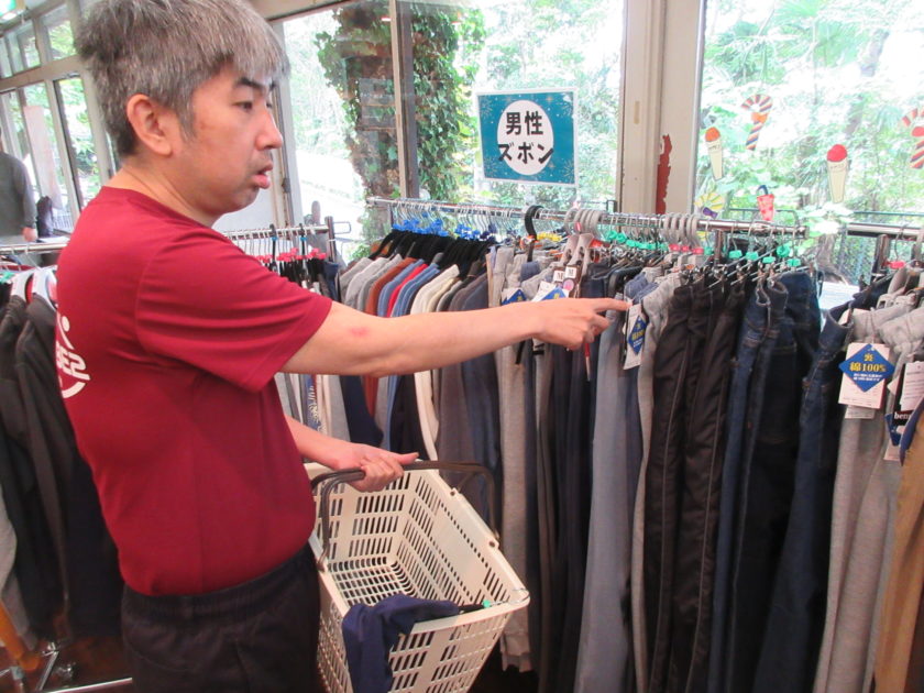 訪問衣類販売で購入されたパジャマを誇らしげに見せてくれました。