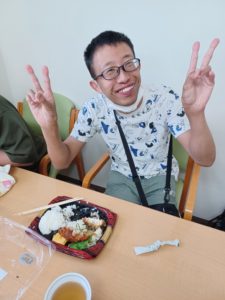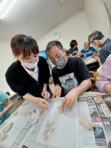 食後は粘土細工を作りました。感触も楽しく、上手に出来ないところは職員と協力して仕上げました。