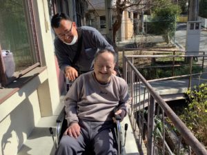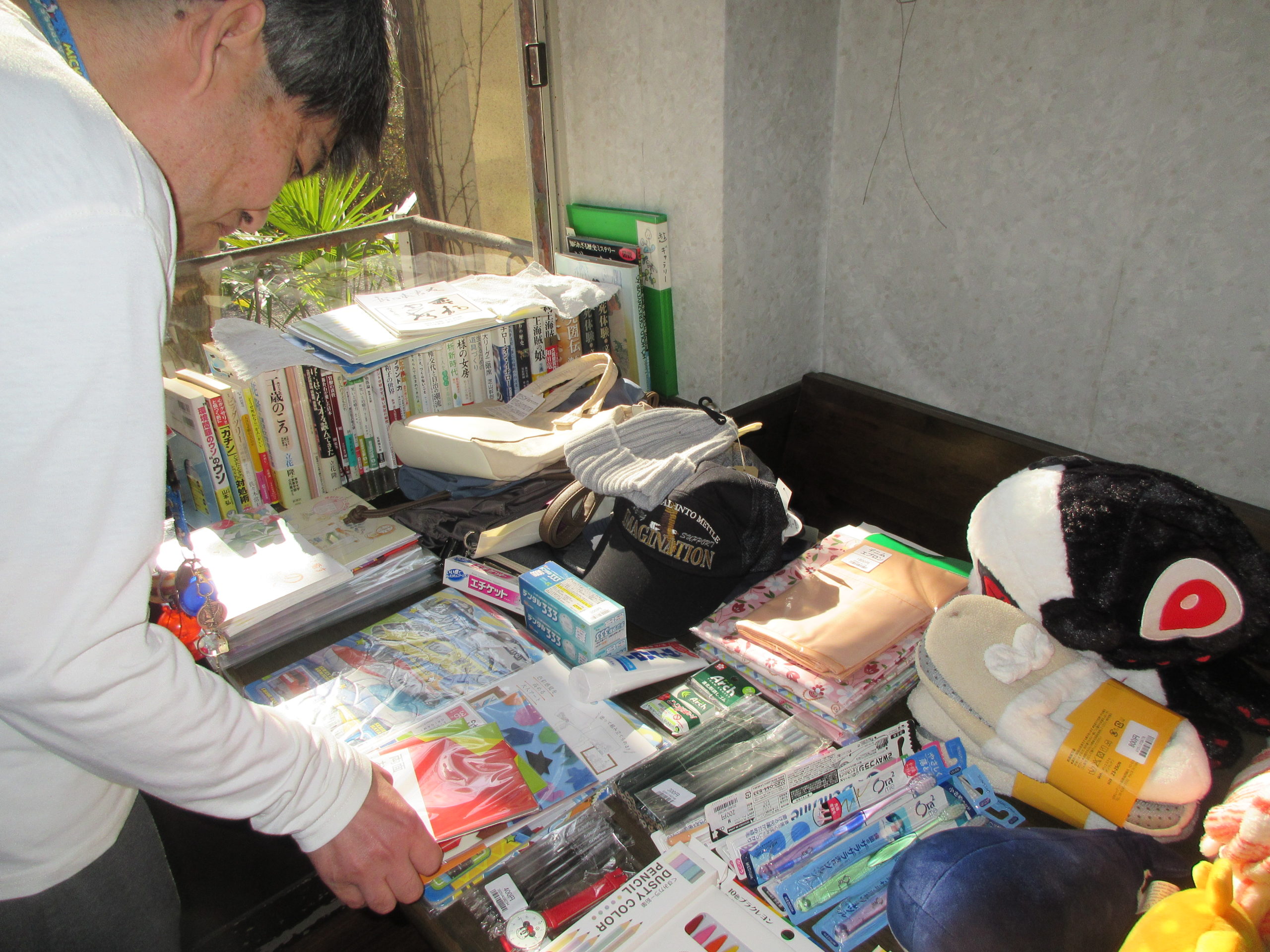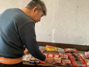 定期的に来てくださる販売員の方が、たくさんの衣類やおやつを持って施設へ。