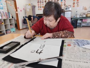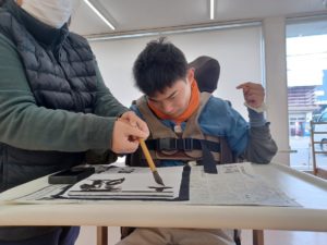 書初めで、思い思いの言葉を。綺麗に書いてくださいました。